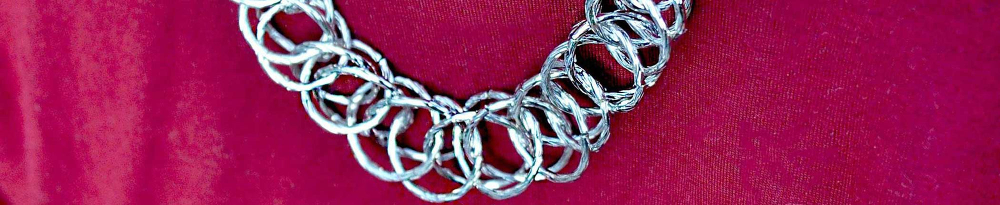 This fabulous geometric chunky chain necklace is one of the most versatile pieces in our collection, its light yet head turning, its intricate yet simple. This silver statement collar necklace consists of intertwined silver shapes with a high shine finish attached to a sturdy chain. An accessory that would look on trend with a white shirt and trousers, or paired with a summer dress, tee or an evening gown.