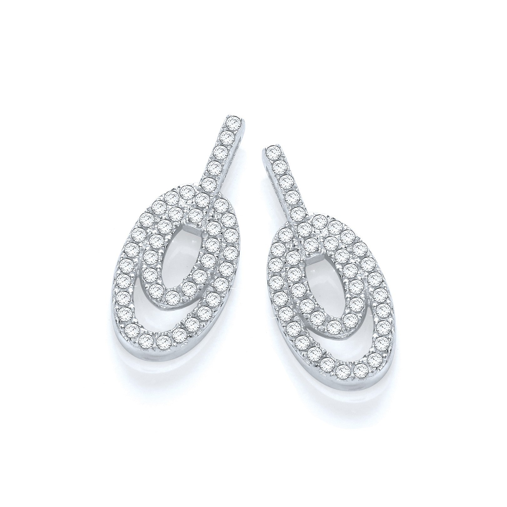 Micro Pave' Oval Intertwined Cz Drop Earrings