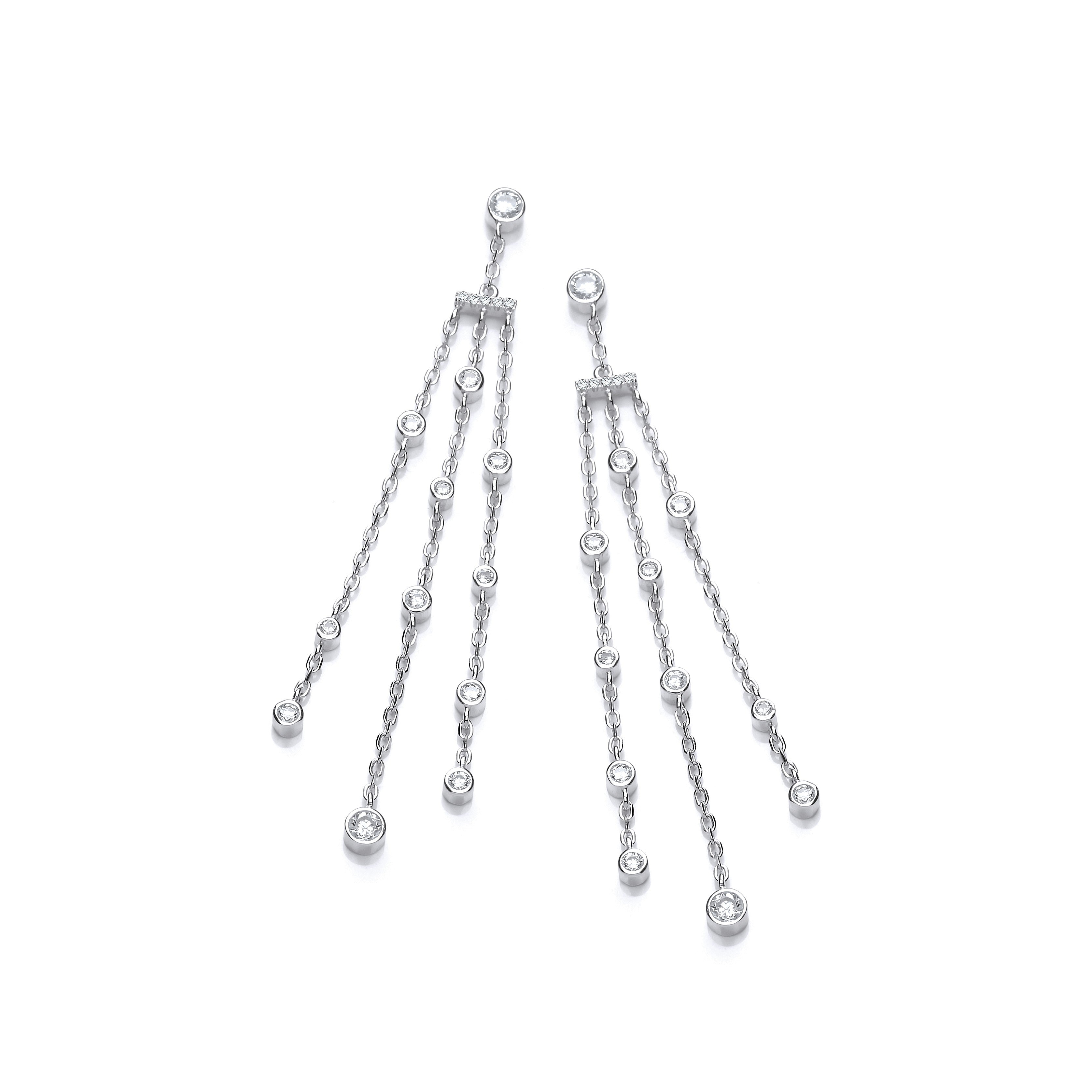 Three Strings with Rubover CZs Silver Drop Earrings
