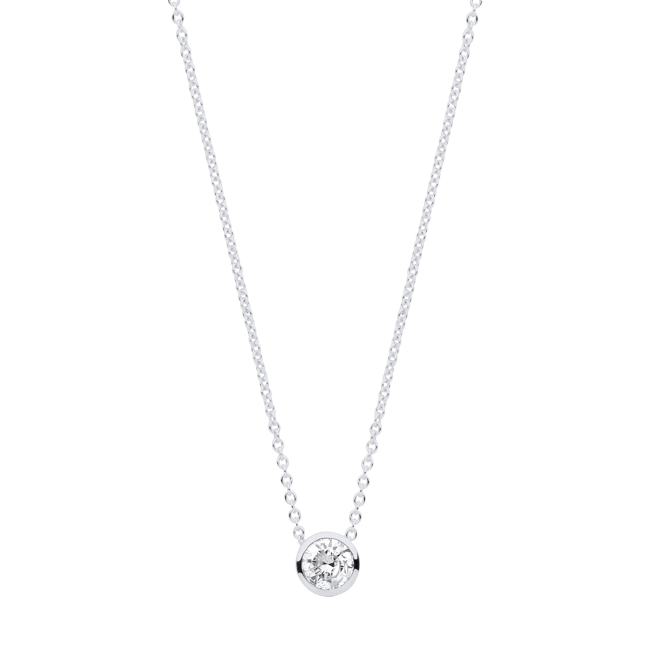 18ct White gold 0.25ctw G-SI Rubover Diamond pendant 18inch/45cm chain
