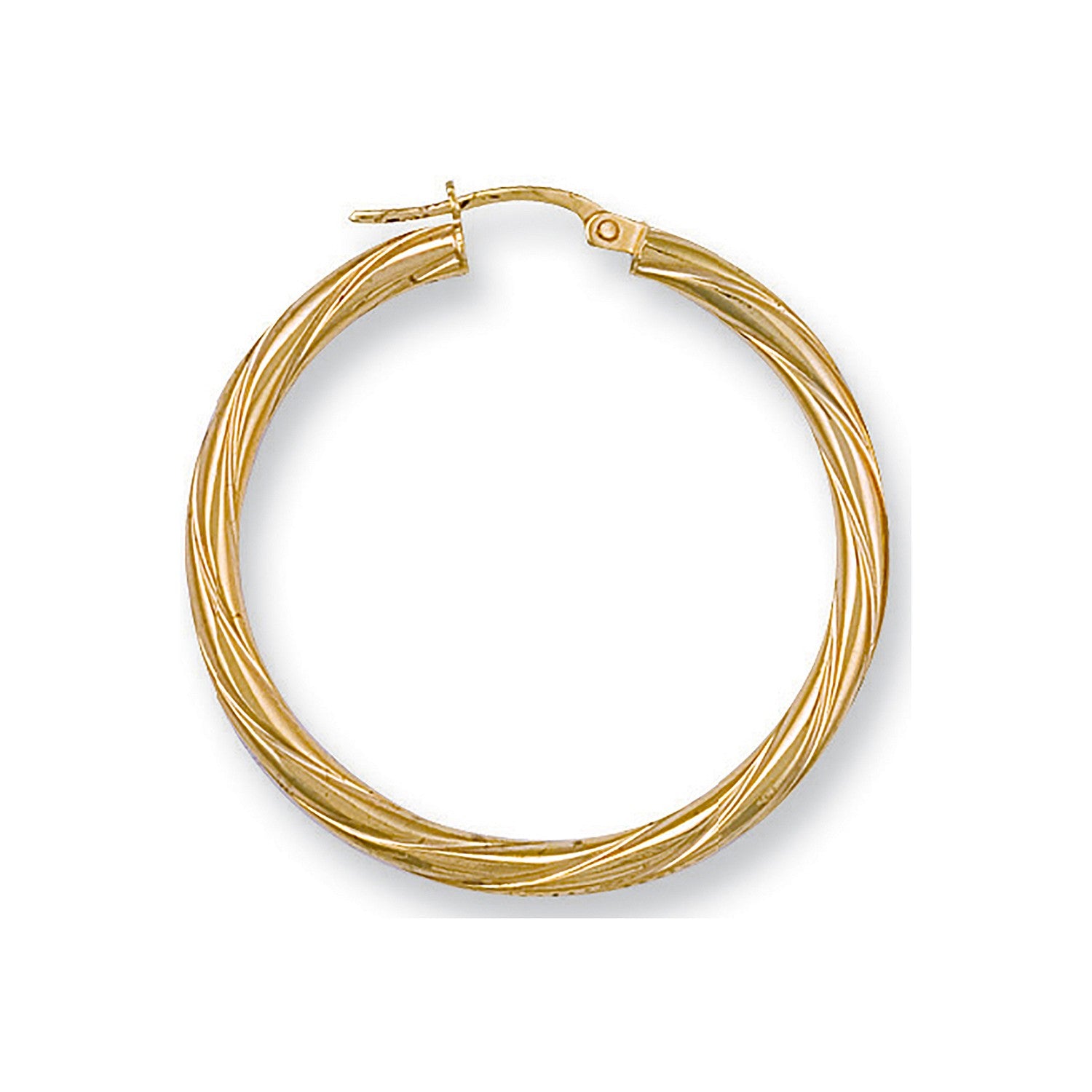 Yellow Gold 22.6mm Moondust & Ribbed Edge Twisted Hoop Earrings