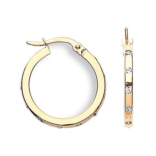 Yellow Gold Moondust p/c Illusion 18.6mm Hoop Earrings