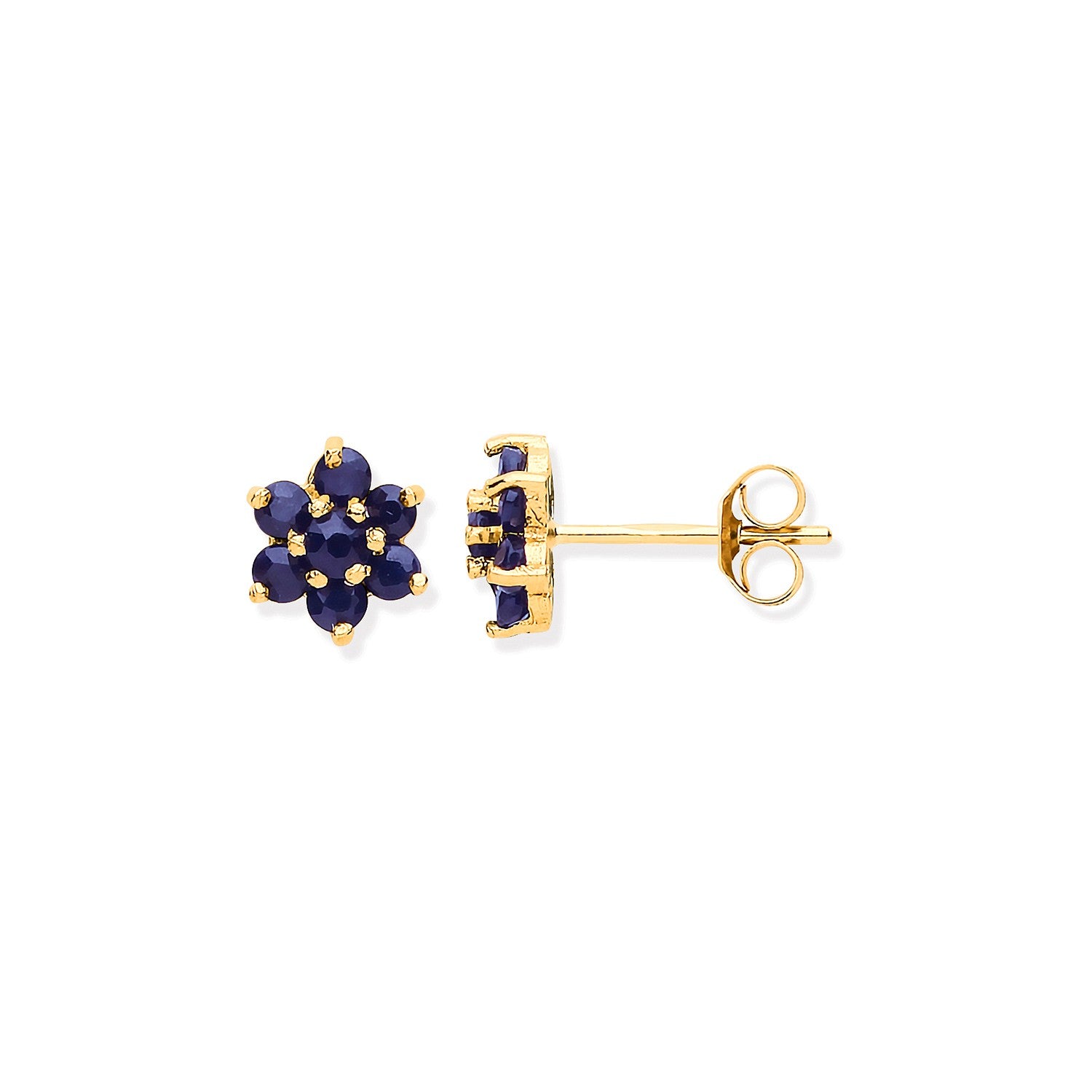 9ct Yellow Gold 0.20ct Diamond & 0.90ct Sapphire Stud Earrings