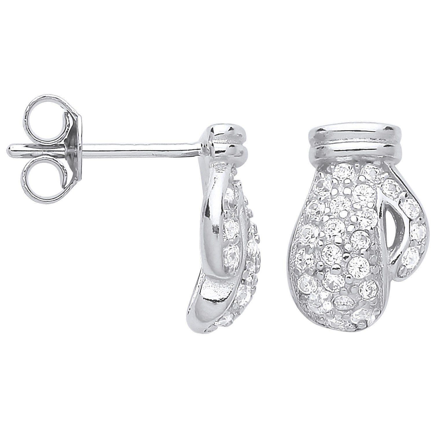 Silver Cz Boxing Gloves Stud Earrings