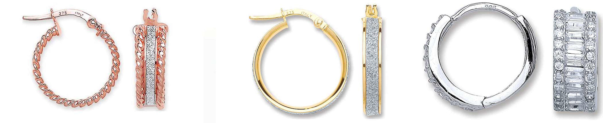 Cubic zirconia gemstones are often matched with many different metals and white gold is definitely one of our favourites! A simple thin hoop with diamantes running through the centre is the perfect way to add bling and sparkle to your outfit! Small white gold hoops are ideal for an understated but glamorous look and we know that this special pair will add elegance to your jewellery box and outfits. These 9ct gold hoops also make for a wonderful gift for that special someone!