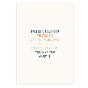 This is a reminder to you to create your own rule book, and live your life the way you want it