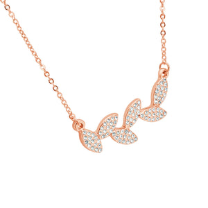 Precious, sparkly and delightful this girly and feminine diamante leaf pendant and necklace will be your go-to piece of jewellery whatever the occasion. Six dainty rose gold diamante encrusted leaves sit intertwined in a zig zag pattern on a simple rose gold chain. Why not treat yourself to this gorgeous rose gold leaf necklace or treat someone you love. This rose gold leaf pendant necklace would make the perfect present for birthdays, bridesmaids and flower girls, gifts for teachers, Mother’s Day, Valentine’s Day or anniversaries.