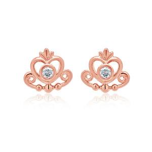 Make like the Duchess of Cambridge with your very own regal and royal tiara stud earrings. These beautiful and feminine earrings feature an intricate and delicate rose gold effect tiara design with a single diamante in the middle of the earring. These studs are simple and striking and would suit any outfit or any occasion from parties, banquets, proms and weddings or as a birthday or wedding gift.