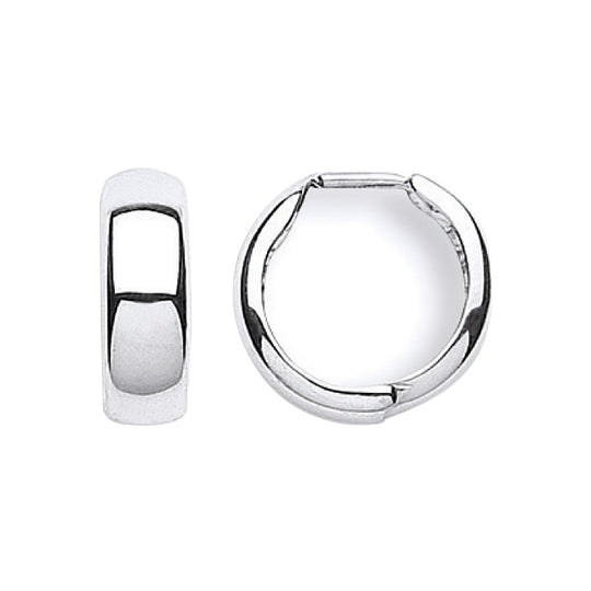 White Gold 10mm Plain Hinged Oval Hoop Huggies