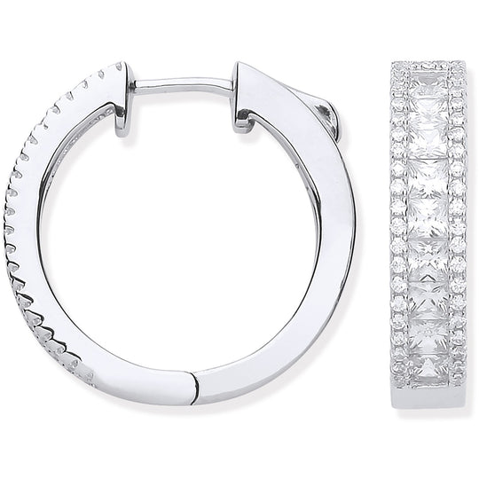 White Gold 12.4mm Princess Cut Cz Hinged Huggies