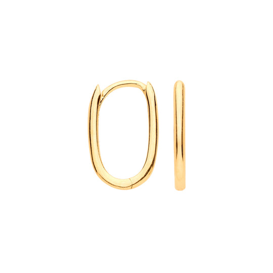 Yellow Gold Plain Hinged Oval Hoop Huggies