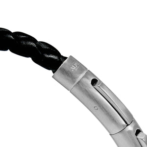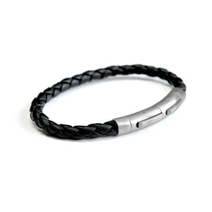 This mens leather bracelet is an online exclusive and not available to buy anywhere else. An online exclusive this streamline genuine leather bracelet with a stainless steel fastening is laser engraved with our Alpha brand. This leather mens bracelet is lightweight and easy to wear and only available on our site. Featuring a thinner braided leather bracelet and a magnetic closure that offers sturdiness to stay put and also easy to take off. Elegant and understated this leather bracelet is a must have to compliment any look.