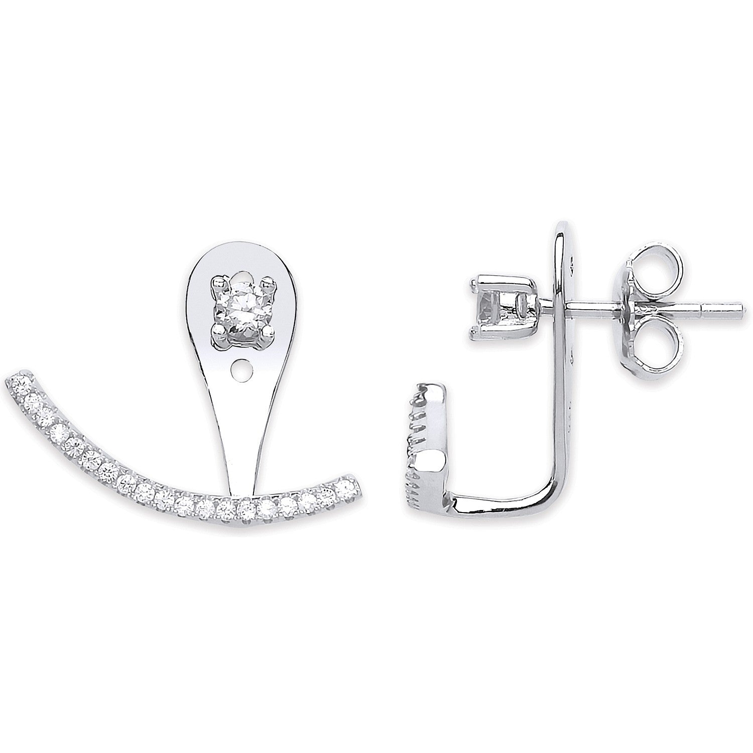 Silver Cz Ear Stud Cuff Wrap Earrings