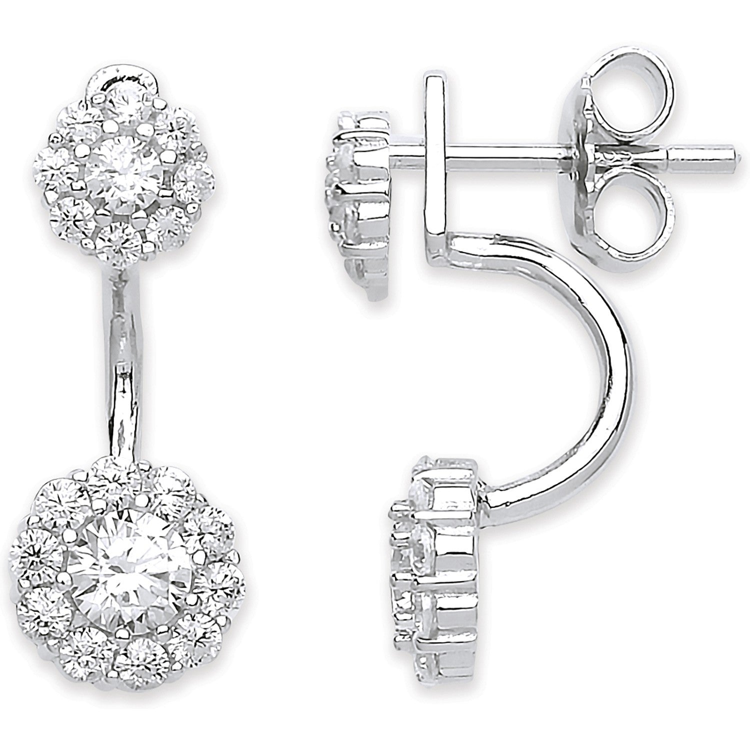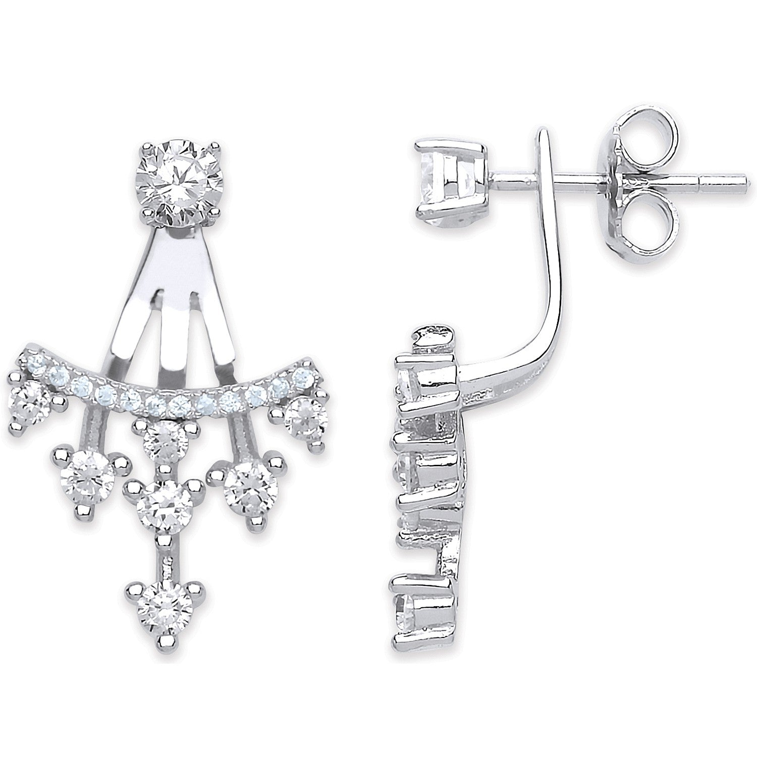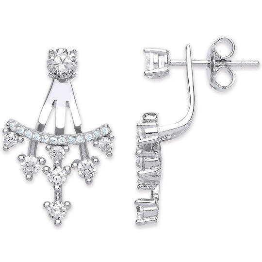 Silver Cz Ear Stud Drop Cuff Wrap Earrings