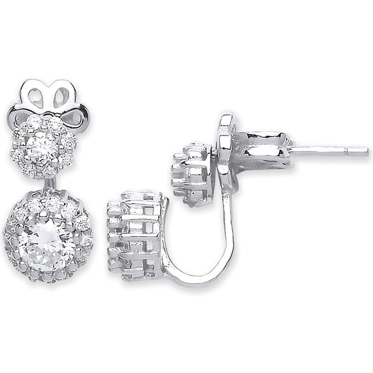 Silver Cz Bow Ear Stud Cuff Wrap Earrings