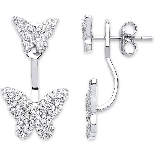 Silver Cz Butterflies Ear Cuff Wrap Earrings