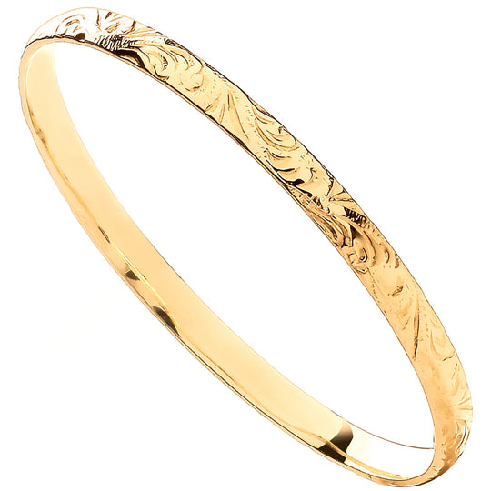 Yellow Gold 4mm D-Shape Filigree Slave Baby Bangle