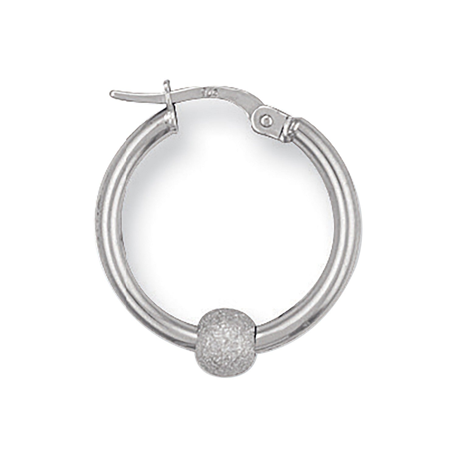 White Gold 16.8mm Glitter Ball Hoop Earrings