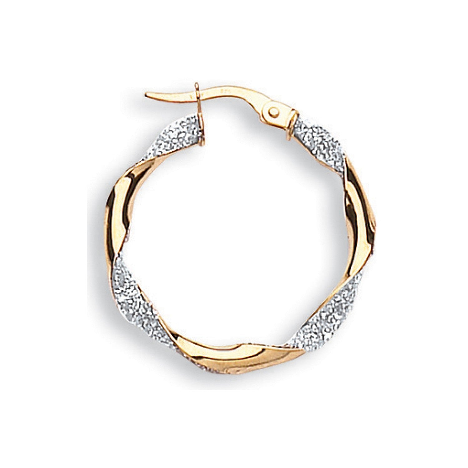 Yellow Gold & White Gold Glitter Finish Twisted 25.3mm Hoop Earrings