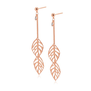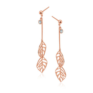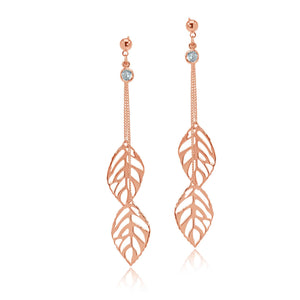 Classic, elegant and feminine these rose gold effect leaf earrings are a stunning addition to any jewellery collection. Intricate and delicate these earrings can be worn with any outfit, day or night. A single chain hangs from a rose gold effect stud and it has two delicate leaf shapes that dangle from the bottom. These rose gold effect leaf drop earrings would make the perfect present for birthdays, bridesmaids, flower girls, gifts for teachers, Mothers Day, Valentines Day or anniversaries.