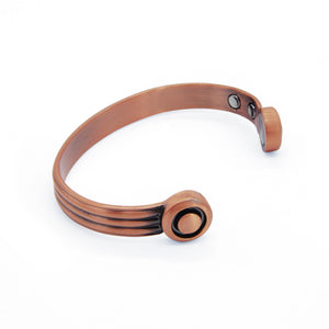 If you like a more timeless, detailed and intricate copper bracelet then look no further, this magnetic bracelet consists of a smooth copper finish with textured darker copper stripes that go all the way round the bracelet, there are small magnets within the inside of the bracelet too. This classic copper bracelet with magnets combines elegance and health benefits all in one.